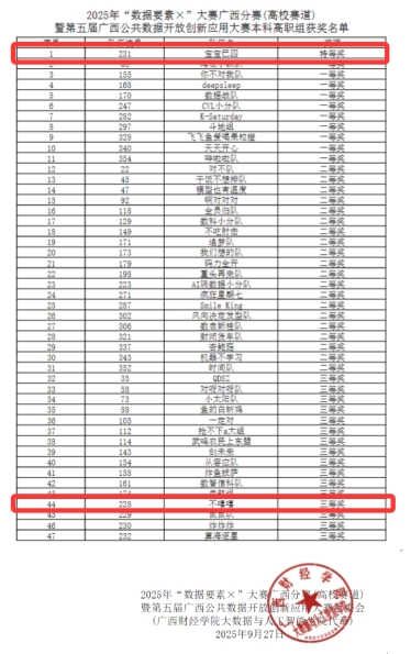 2025年9月27日,2025年“数据要素×”大赛广西分赛(高校赛道)决赛在广西财经学院落下帷幕。乐天堂f88物联网工程专业的学子们在比赛中表现卓越,经过激烈角逐,最终勇夺特等奖1项、三等奖1项的优异成绩,充分展示了我院在数据科学与物联网交叉融合领域的扎实育人成果和学子的创新实践能力。