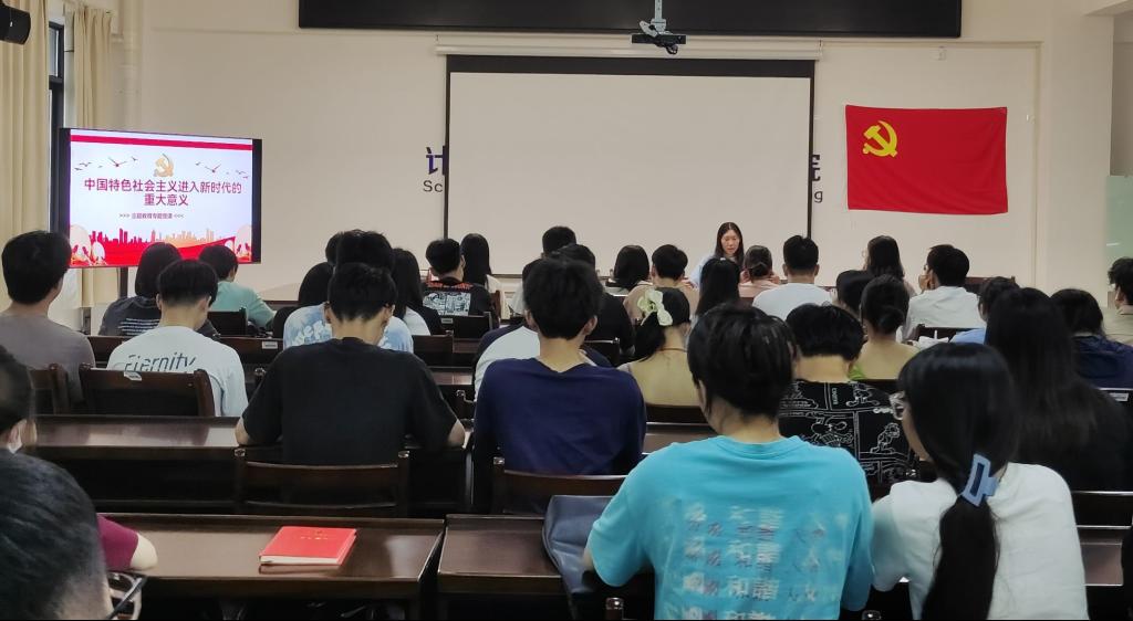 何典聪同志以“中国特色社会主义进入新时代的重要意义”为题目,从习近平新时代中国特色社会主义思想的形成、核心内容以及新时代的体现三个方面展开讲述,指出了习近平新时代中国特色社会主义思想是党和国家必须长期坚持的指导思想,是系统完备的科学体系,是全党全国人民为实现中华民族伟大复兴而奋斗的行动指南。她希望同学们在学思践行的过程中,要培养坚定的理想信念、无畏的担当精神以及真挚的人民情怀。