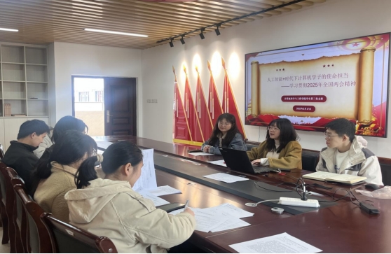 2025年 3 月17日,乐天堂f88学生第三党支部召开 “学习贯彻 2025 年全国两会精神——人工智能 + 时代下计算机学子的使命担当” 专题党课。党课由支部书记杨恋主讲,党支部全体党员参加。