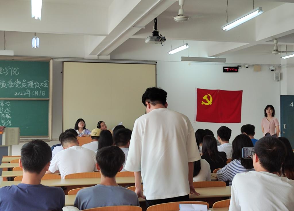 2022年6月1日,乐天堂f88学生第一党支部于中午13点00分在飞天楼405教室顺利召开新一期预备党员接收大会。支部全体在校党员同志参加本次会议,潘小玲老师担任本次大会主持。大会主要讨论并表决关于陈有凡等14名同志发展成为中共预备党员的问题。有表决权的正式党员应到24人,实到18人,未到场的党员同志书面委托其他同志代为投票。