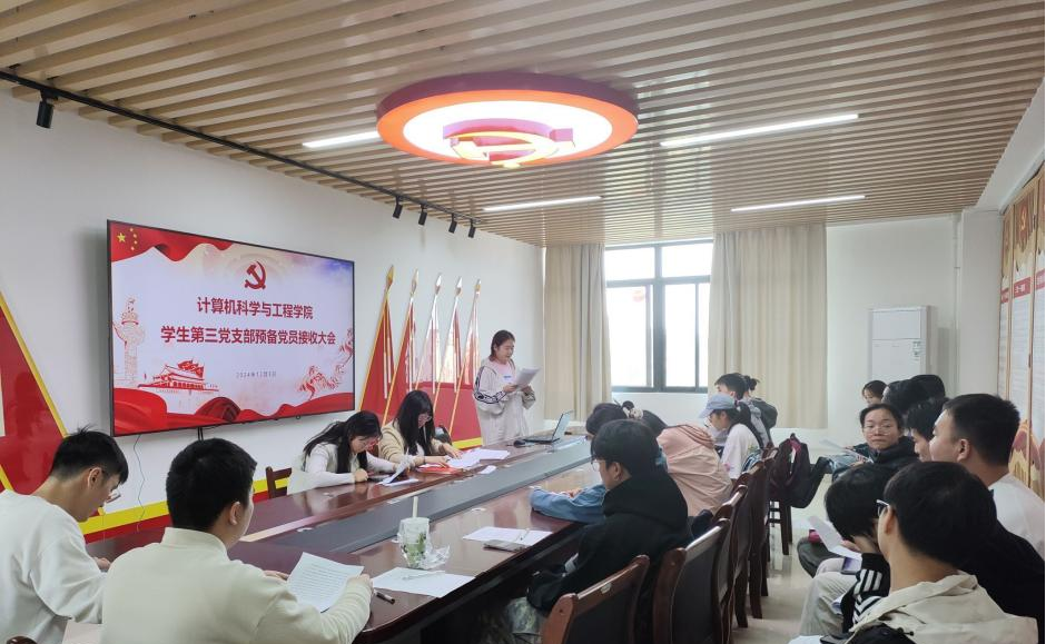 2024年12月3日,我院学生第三党支部召开党员大会,讨论关于刘思睿、陶文博等四名同志发展成为中共预备党员的问题,以及讨论关于黄先棠、莫黄宝等五位预备党员转正事宜。会议由支部书记杨恋主持,支部全体党员参加。