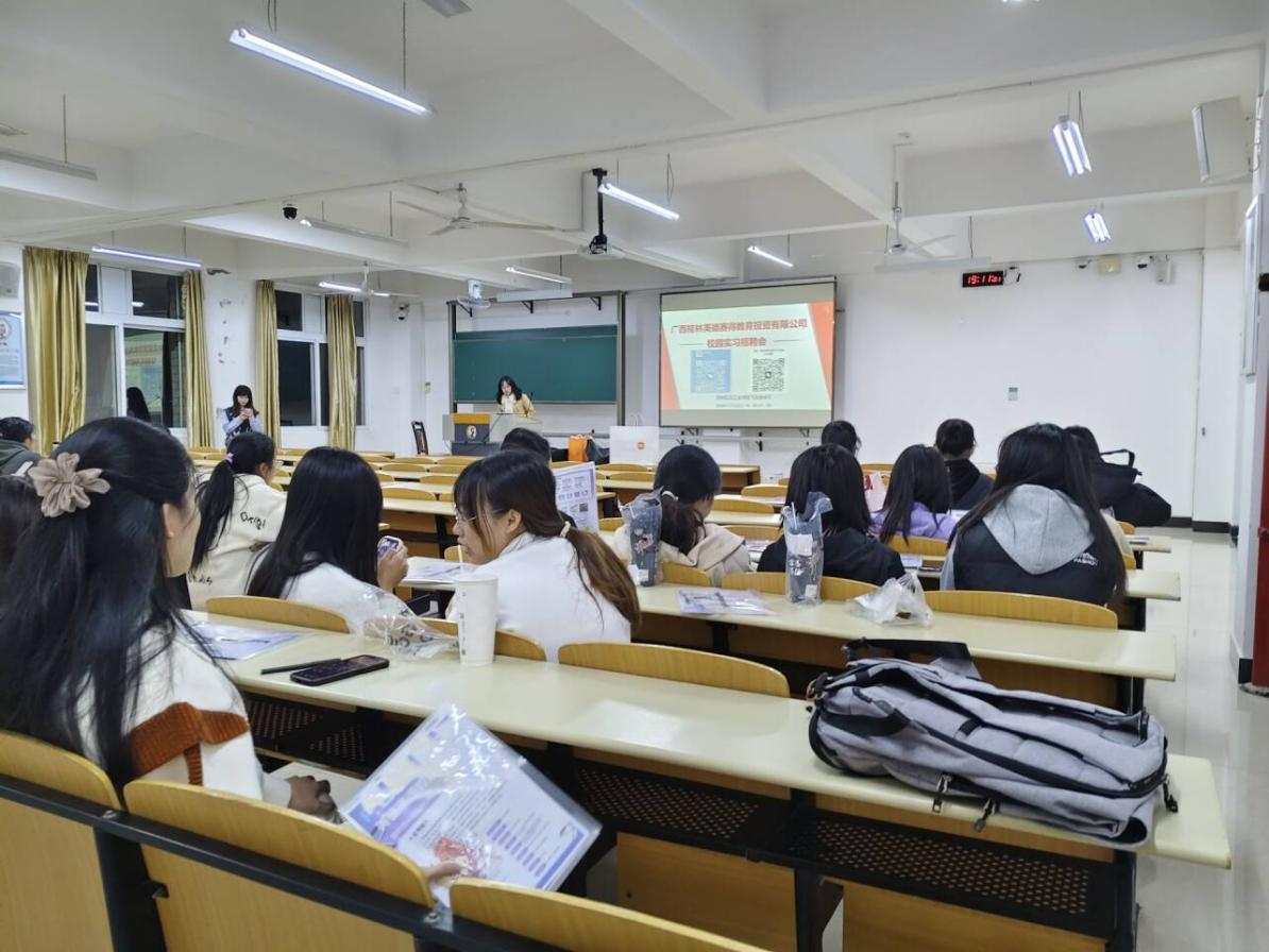 为深入推动2025届应届毕业生的就业工作,2024年11月22日晚,乐天堂f88联合广西桂林美德赛得教育投资有限公司在南校区飞天楼407教室举办了一场别开生面的宣讲会。美德赛得投资有限公司的招聘负责人莅临现场,吸引了众多2025届毕业生参加。