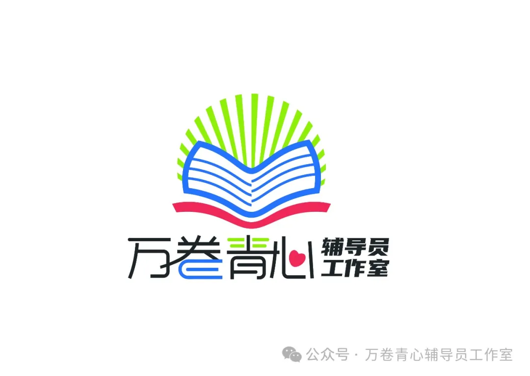 一、设计理念“万卷青心”辅导员工作室LOGO的设计灵感来源于对“阅读促进身心健康成长”的深入探索与理解。我们希望通过展开“书”的“万卷形态”,从不同视角诠释了读书育人的真谛。展现出书籍对于心灵的滋养、读书方式的多样性以及读书带来的积极心境。