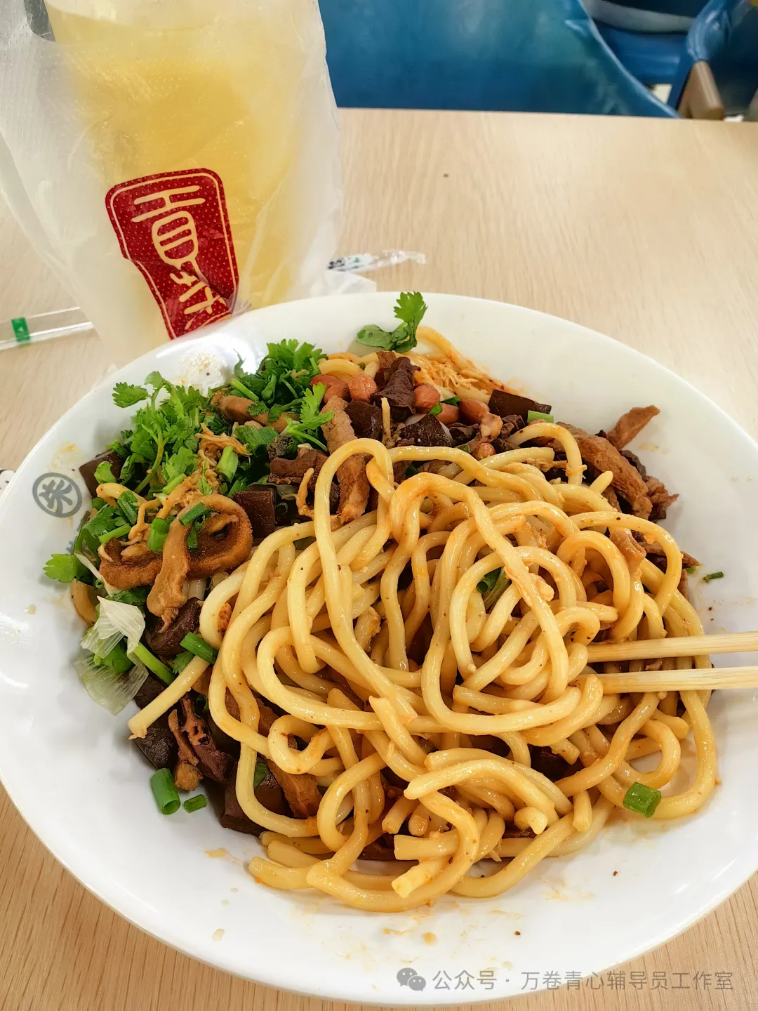 中午到南校区食堂二楼吃“朱家小馆”,这家面都好吃基本不踩雷,我特别爱吃他家的鸡丝拌面,扯得细细的鸡肉丝,富有嚼劲的面条,混着特调的麻酱,咸甜口的麻酱+辣椒酱+面+卤羊杂+小美女同事请我喝的柠檬水,工作的辛劳被这一顿美食激活出味觉的欢愉,美妙的体验让我最近吃面是天天必到。拍照分享到我的学生QQ群里,北校区的一位毕业生“老学长”感慨,快要毕业了还没有吃过南校区的美食,我邀请他今晚就到南校区吃一次好吃的面吧,毕竟离毕业只有45天了。