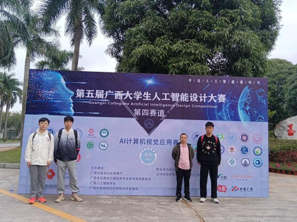 2023年第五届广西大学生人工智能设计大赛由广西区科学技术协会指导,广西区教育厅、广西本科高校计算机类专业教学指导委员会、广西人工智能学会联合主办。本届广西大学生人工智能设计大赛分为7个赛道,物联网工程专业学生参加了在玉林师范学院承办的第4赛道AI计算机视觉应用赛,和在广西科技师范学院承办的第6赛道物联网设计应用比赛,本次比赛共派出参赛队伍4支,学生12人参与比赛。