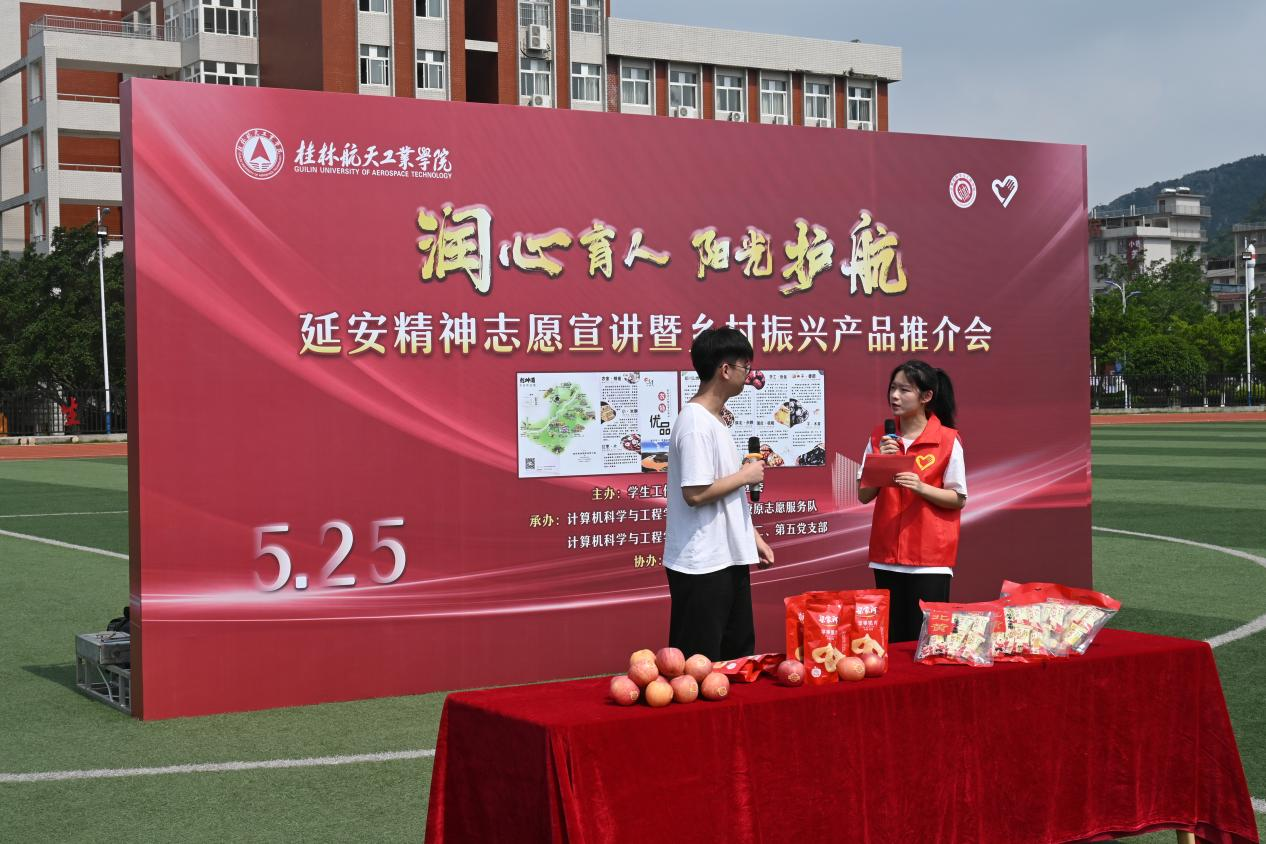 团队在校团委、院团委的大力支持下,针对大学生,开展干部培训会、知识竞赛、党团活动、文艺表演、文创产品分享等活动,提高大学生政治素养。同时,结合大学生“5.25”心理健康日,举办延安乡村振兴产品推介会,分享延安特色农产品,例如苹果干、小米酥等,让广西八桂大地的大学生深入了解延安的特色文化。