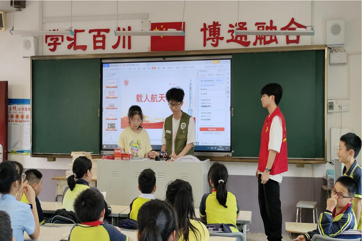 2024年5月12日,宣讲团成员走进桂林市汇通小学,为五年级一、二班的小朋友们带来了一场别开生面的宣讲活动。宣讲团成员通过一段简单的动画视频带领小朋友们简单了解了延安精神的内涵和意义,宣讲团成员结合视频内容,给小朋友们用通俗幽默的语言讲述了革命前辈们在延安生活、工作和战斗的故事。同时,宣讲团成员结合自身的专业知识为小朋友们展示了“智能小车”,激励小朋友们努力学习。