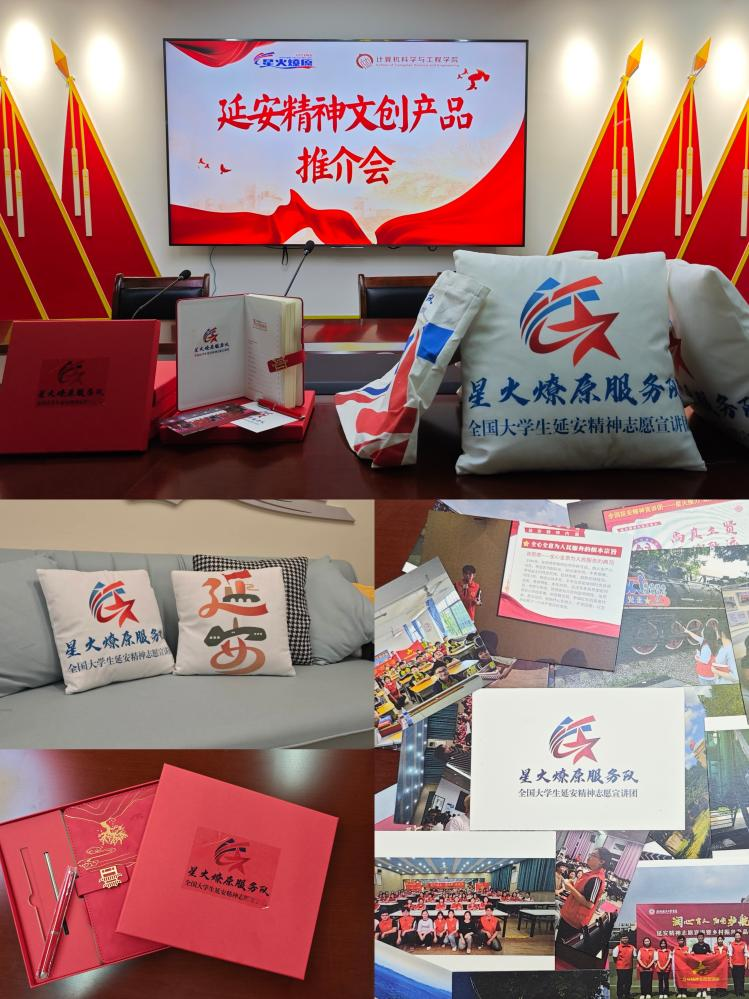 星火燎原队设计了团队logo和多款文创产品,如明信片、服装、水杯等。Logo设计以“航天梦·延安魂”为主题,旨在融合航天科技的先进性与延安精神的深厚内涵。五角星代表着延安精神的光辉历程与伟大成就,体现星火燎原队对延安精神的传承与弘扬,纸飞机象征着梦想与启航,寓意着星火燎原队的志愿服务精神如同纸飞机一样将延安精神传递到更广阔的天地。这不仅是对延安地区丰富历史文化的传承和弘扬,也是对现代生活与传统文化相结合的创新尝试,更好的诠释了红色精神,点亮了红色记忆。